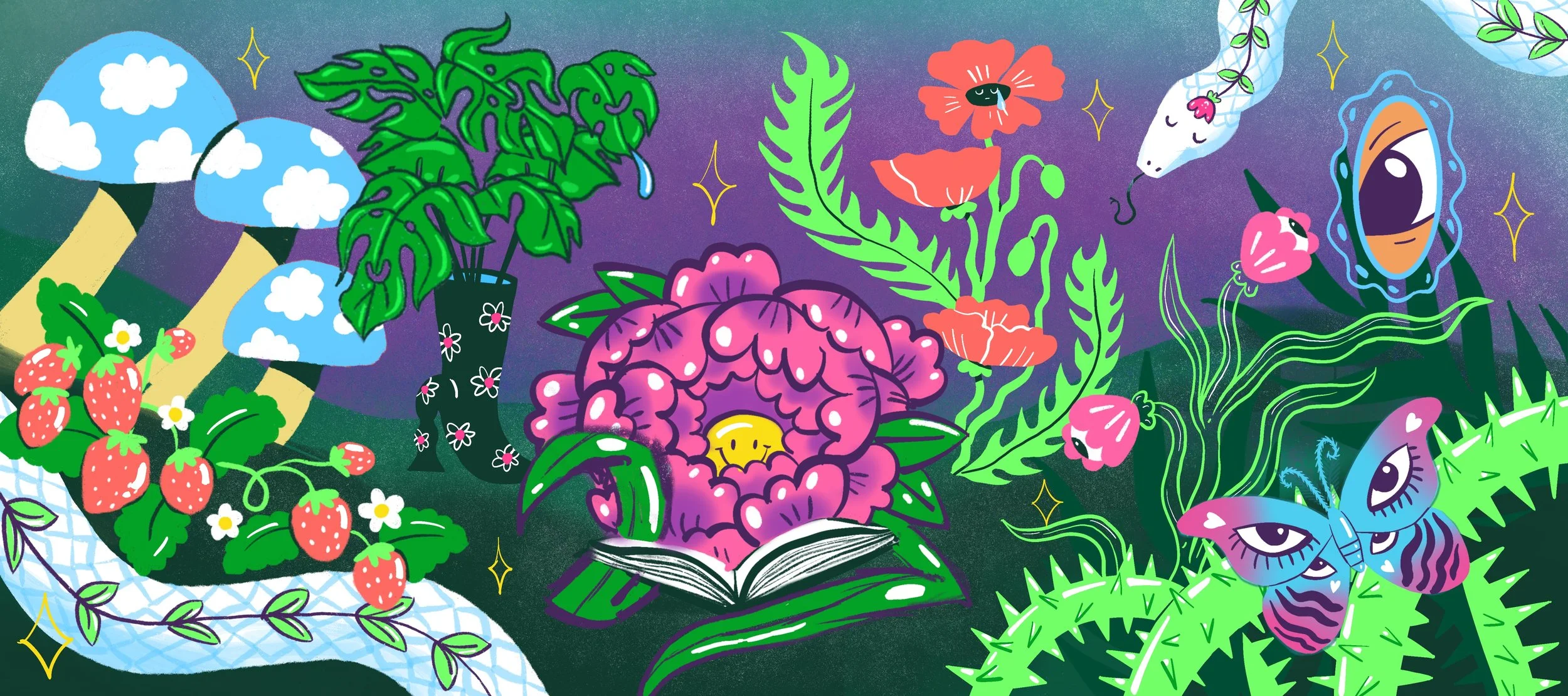 Designed in part by the Rockwood Library Teen Council, who helped brainstorm ideas for the content of the mural. We explored what we enjoyed about reading & landed on the idea of entering a secret world full of possibilities.